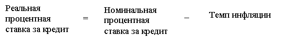 В банковской практике часто используют получаемое из этой формулы приближенное значение ставки по кредиту в условиях инфляции при заданных значениях реальной годовой ставки процентов и годового уровня инфляции: i(y) = i + y, т. е. величина инфляции добавляется к обычному уровню процентов за кредит, которую кредитор назначает, если бы он не ожидал инфляции. Эта формула носит название эффекта Фишера.