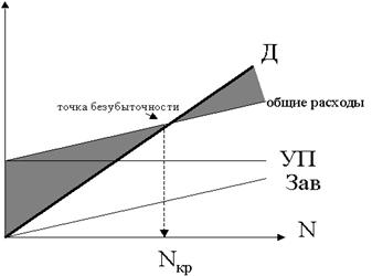 Если объемы производства меньше критического – зона убытков; если больше – зона прибыли.