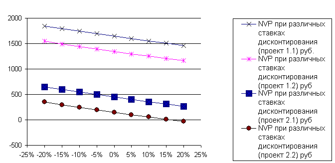 Рисунок 2.1 - Динамика чистого приведенного дохода при вариации ставки дисконтирования