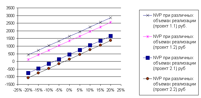 Анализ чувствительности позволяет определить силу реакции результативного показателя (в данном случае NVP) на изменение независимых, т.е. варьируемых факторов.