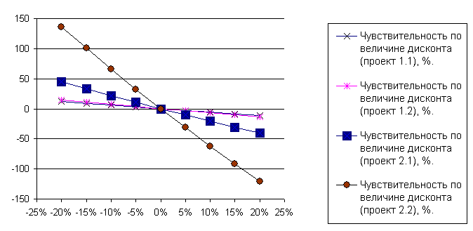 Если сравнивать влияющие факторы, то можно отметить, что величина чистого дисконтированного дохода наиболее чувствительна к изменению выручки.