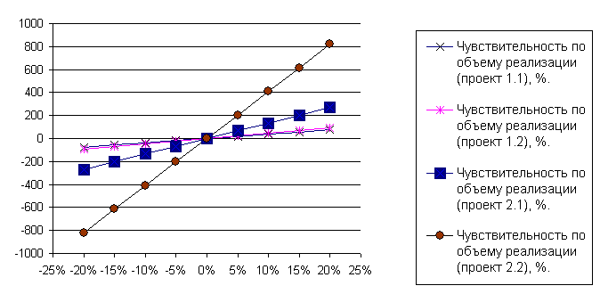 Если сравнить показатели четырех проектов между собой, то можно отметить что наименьшая чувствительность к изменению NVP у первого и второго проекта (инвестиции 854 и 1154 тыс. руб. при условии аренды помещения). У третьего и четвертого проектов (инвестиции 2049 тыс. руб. и тыс. руб. соответственно, условия покупки помещения) чувствительность выше, чем у первого в 3,6 и 11 раз соответственно.