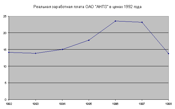 В период с 1992 по 1996 год наблюдался рост реальной заработной платы работников предприятия, в 1996 году рост заработной платы в ОАО «НПЗ» ненамного отставал от индекса потребительских цен в результате реальная заработная плата понизилась на 0,4 рубля. В 1998 году наблюдается резкое падение уровня реальной заработной платы. Это связано в первую очередь с общероссийским кризисом (17 августа 1998 года), когда произошел резкий «обвал» национальной валюты и выросли цены как на импортные товары и продукты, так и на товары первой необходимости. Надо отметить что резкое снижение реальной заработной платы связано так же с тем, что за последние четыре месяца 1998 года заработная плата работникам акционерного общества не была проиндексирована.