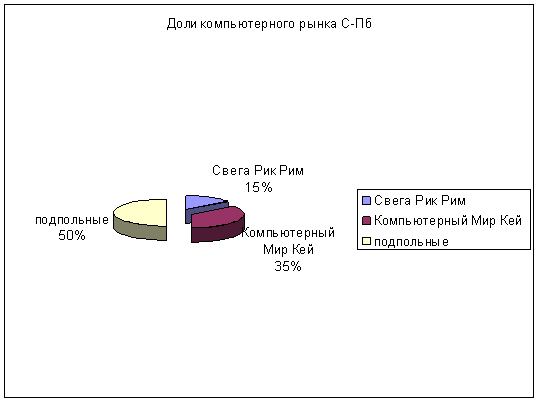 Диаграмма 1. Доли торговых сетей в Петербургском рынке компьютеров.