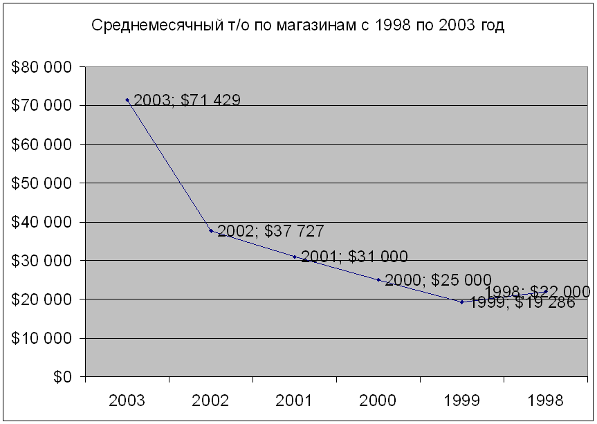 Таблица 1. Товарооборот сети Компьютерный Мир с 1998 - 2003