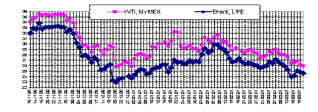В связи с тем, что Brent добывается на море, для нее фактически отсутствуют спот-цены. Вместо них обычно используют котировки Brent dated, публикуемые в различных специализированных агентствах вроде Platt’s и Petroleum Argus. По методологии Platt’s цена Brent dated оценивается по реальным сделкам и двусторонним котировкам на форвардную поставку товара не ранее, чем через семь дней, но не позже, чем через 17. Отгрузка товара осуществляется в порту Саллом Воу (Sullom Voe), а сам товар представляет собой смесь Brent с плотностью около 38° API и содержанием серы 0,4%. Среднесуточный объем Brent, поставляемый в Саллом Воу, составляет около 575 тыс. баррелей. В том случае, когда конкретные даты поставки еще не определены, Brent торгуется как обычный форвардный контракт на один (т.н. 15-суточный Brent), два, три и более месяцев. Ежедневные котировки Brent dated, 15-суточного Brent и котировки ближайших фьючерсов на LIPE, естественно, сильно коррелируют, поскольку связаны механизмом арбитража.
