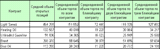 Торговля фьючерсами предусматривает возможность физической поставки нефти, что связывает ее с реальным рынком через механизм арбитража. На NYMEX осуществляется поставка шести низкосернистых (0,42%) американских сортов с плотностью в интервале 37°-42° API: West Texas Intermediate, Low Sweet Mix, New Mexican Sweet, North Texas Sweet, Oklahoma Sweet, South Texas Sweet. Кроме того, возможны импортные поставки с плотностью в интервале 34°-42° API: английских Brent и Forties, нигерийских Bonny Light и Qua Iboe, норвежской Oseberg, колумбийской Cusiana. Из-за различий в качестве цены поставок иностранных сортов определяются на основе Light Sweet со скидками и премиями, а также учетом фрахта и прочих издержек на транспортировку. Так, Brent, Forties Oseberg торгуются с дисконтом 30 центов, Bonny Light и Cusiana - с премией в 15 центов, а Qua Iboe - в 5 центов. Следует отметить, что физическая поставка нефти по биржевым контрактам происходит редко и составляет лишь около 1% от всего объема торгов. Это связано в том числе и с тем, что нефти соответствующих сортов реально добывается на два порядка меньше виртуального объема торгов. Так, на LIPE за один день заключается в среднем около 68,6 тыс. фьючерсных контрактов по смеси Brent, что эквивалентно мировой суточной добычи сырой нефти, а на NYMEX - 152 тыс. фьючерсных контрактов по смеси Light Sweet (222% всей добычи). При этом добыча нефти соответствующих марок составляет всего около 700-800 тыс. барр./сут. (см. таблицу 2).