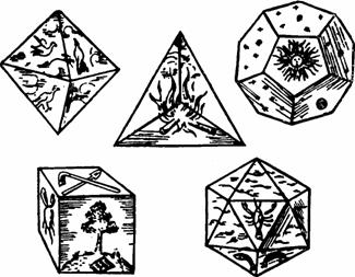 Рис. 2 Правильные многогранники (из книги Кеплера «Космографическая тайна») |