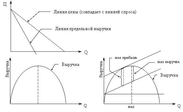Цена ориентирована на максимальную прибыль. У монополиста прибыль зависит от цены и поведения покупателей. Нанеся на график выручки график затрат, мы увидим, что максимально прибыльный объем сбыта находится там, где максимальное сальдо между выручкой и затратами, а не там, где выручка максимальна.