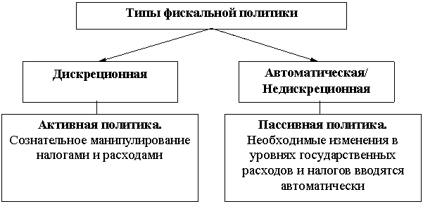 Под дискреционной фискальной политикой понимается сознательное манипулирование налогами и правительственными расходами с целью изменения реального объема национального производства и занятости, контроля над инфляцией и ускорения экономического роста.