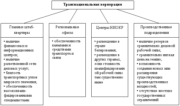 Рис. 1 Условия размещения основных подразделений транснациональных корпорация