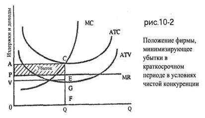 Всякий раз. когда цена превышает минимум средних переменных издержек (AVC), но опускаясь ниже средних валовых издержек (АТС) фирма может, осуществляя производство, возместить часть, но не все постоянные издержки (рис. 10-2).