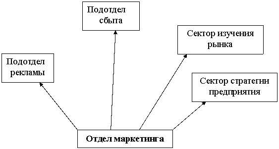 Подотдел планирования сбыта. Его основная функция заключается в разработке планов по маркетингу и в координации разнообразной деятельности на рынке различных подразделений отдела. Планы по структуре рынка, ценам и качественным характеристикам товаров разрабатываются также этим подразделением.