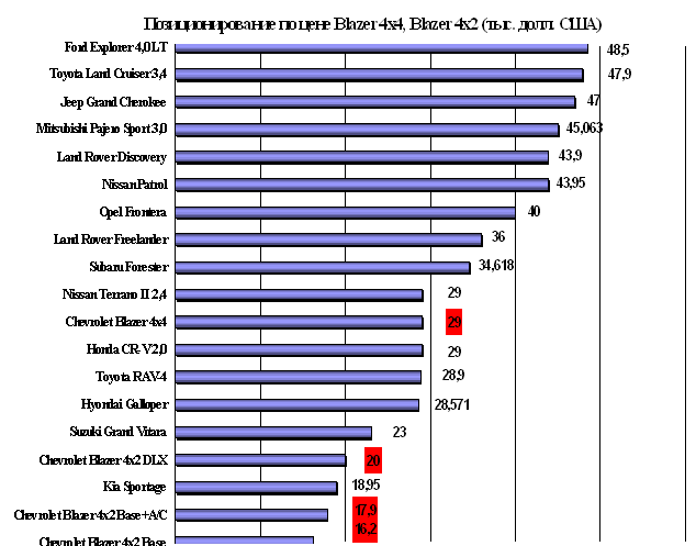 Позиционирование Chevrolet Blazer 4х4 и Chevrolet Blazer 4х2 на тюменском рынке по цене представлено на рис. 3.1.