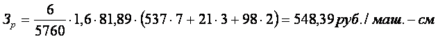 где Зр – размер оплаты труда рабочих-ремонтниокв, руб/маш-см;