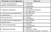 Некоторые из наиболее часто используемых классификаций приведены в таблице.