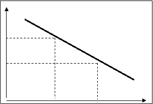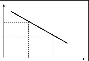 Кривая спроса показывает, какое количество товара будет продано на рынке в течение конкретного отрезка времени по разным ценам. В обычной ситуации спрос и цена находятся в обратно пропорциональной зависимости, т.е. чем выше цена, тем ниже спрос, чем ниже цена, тем выше спрос. Так что, подняв цену с P1 до P2, предприятие продаст меньшее количество товара.