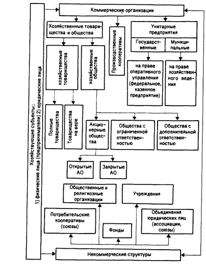• хозяйственные общества — общества с ограниченной ответственностью, общества с дополнительной ответственностью, акционерные общества (открытого и закрытого типа);