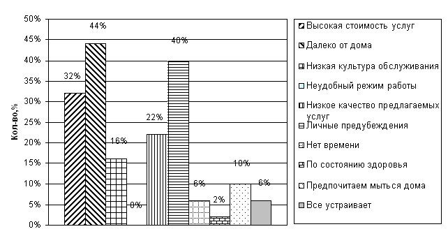 В ходе исследования были исследованы причины не полного удовлетворения в услугах бань. Результаты приведены на рис. 13.