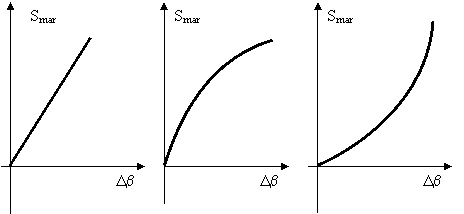 На рис. 3.3.1.б) показана кривая, характеризующая замедление роста затрат, а на рис. 3.3.1. в), наоборот, ускоренный рост затрат, приходящийся на единицу эластичности функции спроса. Последний вид функции представляется, вообще говоря, более обоснованным, потому что при высокой эластичности дешевле перейти на более низкий уровень, чем при низкой эластичности. Общий же вид функции Smar(Db) можно представить одной формулой: