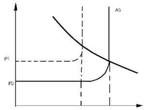 Смещение кривой совокупного предложения влево (AS1-AS2) отражает увеличение издержек на единицу продукции, возрастают цены (P1-P2), сокращается реальный объем производства (Q2<Q1), или реальный ВНП.