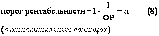 5. На основе зависимости (5), а также зависимости (6), используются по два новых, не встречавшихся в традиционной литературе по операционному анализу, уравнения для вычисления запаса финансовой прочности предприятия в относительных единицах, запаса финансовой прочности предприятия в процентах и запаса финансовой прочности в абсолютных единицах.