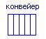 "Конвейер” получает материал из потока, хранит его в течение определенного времени (т.е. пока он находится на “ленте” конвейера), затем выгружает. Оператор устанавливает время работы конвейера, его максимальную загрузку, а также ограничение по темпам загрузки (в случае необходимости).