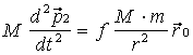 Вычитая из уравнения (3) уравнение (4), получим уравнение движения материальной точки m относительно притягивающего центра М: