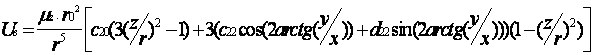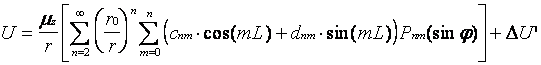 Uв = (mz/r)(r0/r)2[c20P20(sinj) + (c22cos(2L) + d22sin(2L))P22(sinj)],