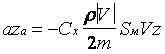 Найдем проекции аэродинамического ускорения на оси абсолютной системы координат axa, aya, aza: