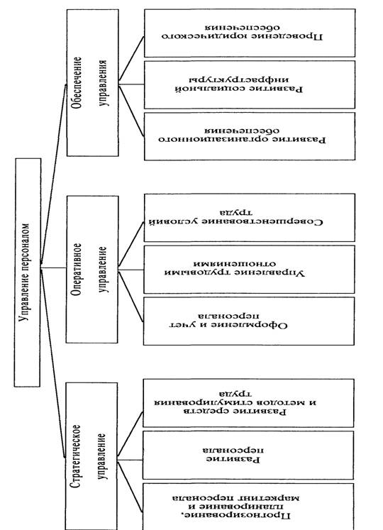 Проведение в жизнь принятой стратегии обеспечивается за счет стратегического и оперативного управления. Укрупненная структура функций, а также роль и место стратегического и оперативного управления, в руководстве персоналом предприятия показана на рис.1[4].