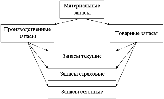 Производственные и товарные запасы подразделяются на текущие, страховые и сезонные [3, с. 188].