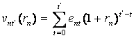 Использование конечной стоимости имущества предприятия в качестве критерия принятия решения предполагает, как и величина капитализированной текущей стоимости, выбор одного и того же «момента привязки» — момента, к которому она рассчитывается для всех инвестиционных альтернатив. Поскольку срок эксплуатации может быть различным для разных альтернатив, таким моментом выбирается Т = mах{Tn: n = 1(1)N}. Модели оценки конечной стоимости, как правило, предполагают наличие заданной, одинаковой для всех периодом суммы изымаемых, из оборота средств еn > 0. Величина такого изъятия, однако, только тогда начинает влиять на решение о выборе инвестиционной альтернативы, когда рассчитанные с учетом этого изъятия значения конечных стоимостей для всех альтернатив оказываются меньше 0, что означает отклонение всех этих альтернатив — отказ от них. В остальных случаях величина изъятия не играет роли при принятии решения, поскольку синхронно на величину фактора уменьшается конечная стоимость для всех альтернатив. Модель оценки конечной стоимости выражается формулой: