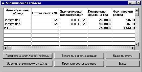 Именно такую таблицу формирует программное приложение при нажатии на кнопку «включить в аналитическую таблицу». Для самоконтроля эту таблицу можно просматривать при помощи кнопки «аналитическая таблица», после нажатия которой на экран выводится форма (см. рисунок 3) .