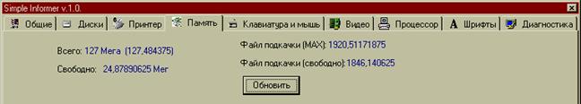 память – информация о системной памяти, о ее количестве, информация о файле подкачки.