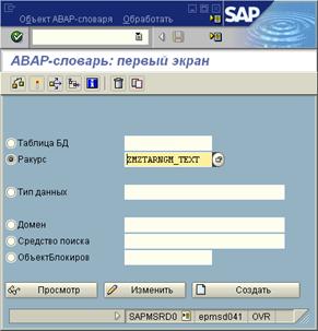 Создание нового ракурса осуществляется при помощи системы SAP R/3 посредством вызова транзакции SE11 (рисунок 13).