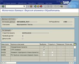 При этом отмечаются только те поля, по которым необходимо будет ограничивать загрузку данных. Это является заключительной стадией создания источников данных. Следует отметить, что этап создания источников данных является наиболее важным в проектировании новых хранилищ данных в системе SAP BW.