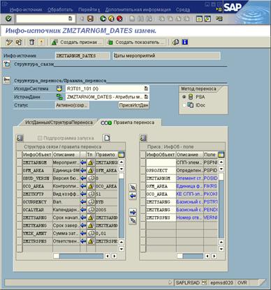 3.8.3 Настройка правила переноса инфо-источника «Даты мероприятий» (ZMZTARNGM_DATES) и источника данных «Атрибуты мероприятия» (ZMZTARNGM_DATES)