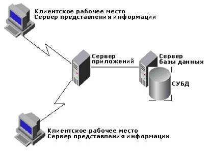 Сервер представления информации. Сервер представления информации функционирует на рабочем месте каждого пользователя: обрабатывает команды, вводимые с клавиатуры, управляет отображением информации и обеспечивает связь с исполняемыми на сервере приложений программами, реализующими бизнес-модели. При этом, клиентские машины не задействованы в выполнении бизнес-логики.