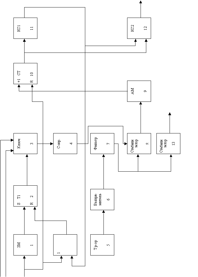 11-комбинационная схема КС1, определяющая какое количество импульсов должен подсчитать двоичный счетчик;