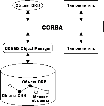 Рисунок 5 ООСУБД, построенная на основе стандартов ODMG во взаимодействии с CORBA. |
