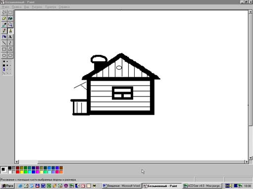 Windows не просто операционная система. В ее состав входит множество разнообразных прикладных программ. Текстовый редактор и графический редактор, программы для мультимедиа и т.д Запускаются прикладные программы через вложенные папки меню ПУСК / Программы. Программы поставляющиеся в составе самой Windows, находятся в папке "Стандартные". Остановимся на графическом редакторе "Paint". Эту программу очень любят дети. Похоже именно для них она и создавалась – милая, простенькая рисовалочка. Интерфейс Paint очень прост: текстовое меню вверху, Панель инструментов – слева и Панель выбора цветов – внизу. Вот типичный пример работы в Paint.