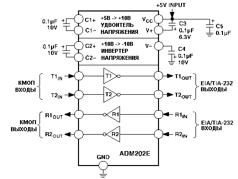 Функциональная блок-схема интегральной микросхемы ADM 202E представлена на рис.2