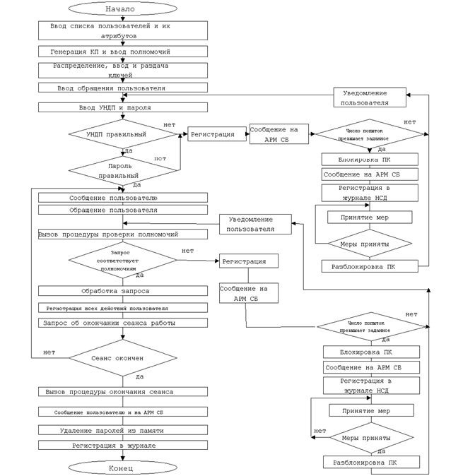 Рис.4.1. Схема алгоритма функционирования специальных программно-аппаратных средств защиты информации