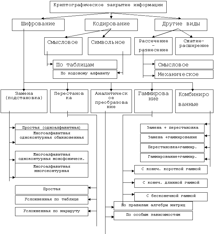 Для построения средств защиты от НСД необходимо иметь представление о методах криптографии. Их классификация приведена на рис.5.2.