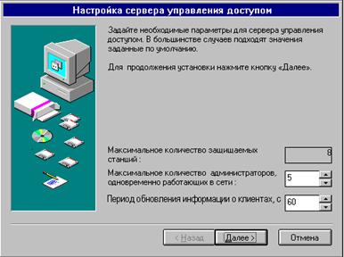 Администратор может изменить следующие параметры настройки сервера управления доступом (как это показано на рис.5.5):