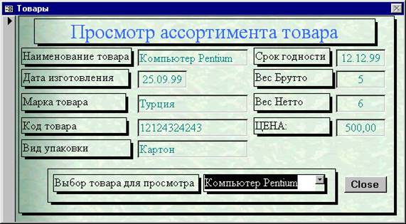 Форма «ТОВАР»