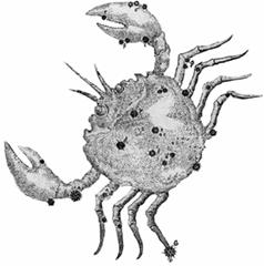 Созвездие Рака - одно из самых малозаметных зодиакальных созвездий. История его очень интересна. Существует несколько довольно экзотических объяснений происхождения названия этого созвездия. Так, например, всерьез утверждалось, что египтяне поместили в эту область неба Рака как символ разрушения и смерти, потому что это животное питается падалью. Рак движется хвостом вперед. Около двух тысяч лет назад в созвездии Рака находилась точка летнего солнцестояния (т.е. самая большая продолжительность светового дня). Солнце, достигнув в это время предельного удаления к северу начинало "пятиться" назад. Продолжительность дня постепенно уменьшалось. По классической древней мифологии огромный морской Рак напал на Геракла, когда он боролся с Лернейской Гидрой. Герой раздавил его, но богиня Гера, ненавидевшая Геракла, поместила Рака на небо. В Лувре хранится знаменитый египетский круг зодиака, в котором созвездие Рака располагается выше всех остальных.