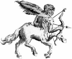 По древнегреческой мифологии мудрейший из кентавров Хирон, сын бога Хроноса и богини Фемиды, создал и первую модель небесной сферы. При этом одно место в Зодиаке он отвел для себя. Но его опередил коварный кентавр Кротос, занявший обманом его место и ставший созвездием Стрельца. А самого Хирона бог Зевс превратил после смерти в созвездие Кентавра. Вот так и оказалось на небе целых два кентавра. Злобного Стрельца боится даже сам Скорпион, в которого тот целится из лука. Иногда можно встретить изображение Стрельца в виде кентавра с двумя лицами: одно обращено назад, другое - вперед. Этим он напоминает римского бога Януса. С именем Януса связан первый месяц года - январь. А Солнце находится в Стрельце зимой. Таким образом, созвездие как бы символизирует конец старого и начало нового года, причем одно его лицо смотрит в прошлое, а другое - в будущее. В направлении созвездия Стрельца находится центр нашей Галактики. Если посмотреть на карту звездного неба, то Млечный Путь проходит и через созвездие Стрельца. Как и Скорпион, Стрелец очень богат красивыми туманностями. Пожалуй, это созвездие больше любого другого заслуживает название «небесная сокровищница». Многие звездные скопления и туманности поразительно красивы.