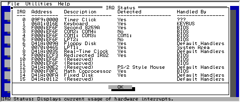 Далее, в появившемся меню, надо выбрать мышью "IRQ Status" или нажать кнопку "Q".